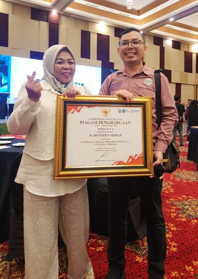 Kabupaten Sidrap sukses meraih dua piagam penghargaan dari Gubernur Sulawesi Selatan pada kegiatan Diseminasi Hasil Akhir Program Aksi Stop Stunting Tahun 2025 Provinsi Sulawesi Selatan yang digelar di Unhas Hotel & Convention, Kota Makassar, Rabu (24/12/2025).