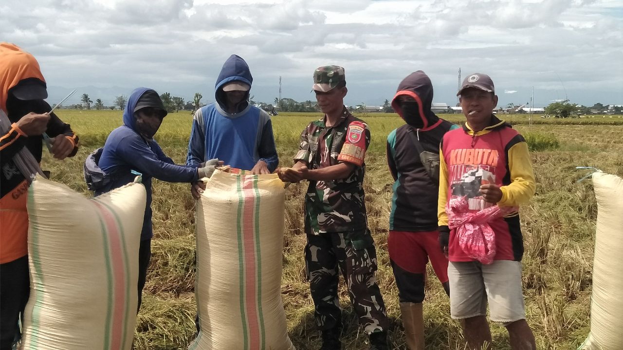 Babinsa Kanyuara Mendampingi Proses Panen Padi di Lokasi Sawah “Latappareng”