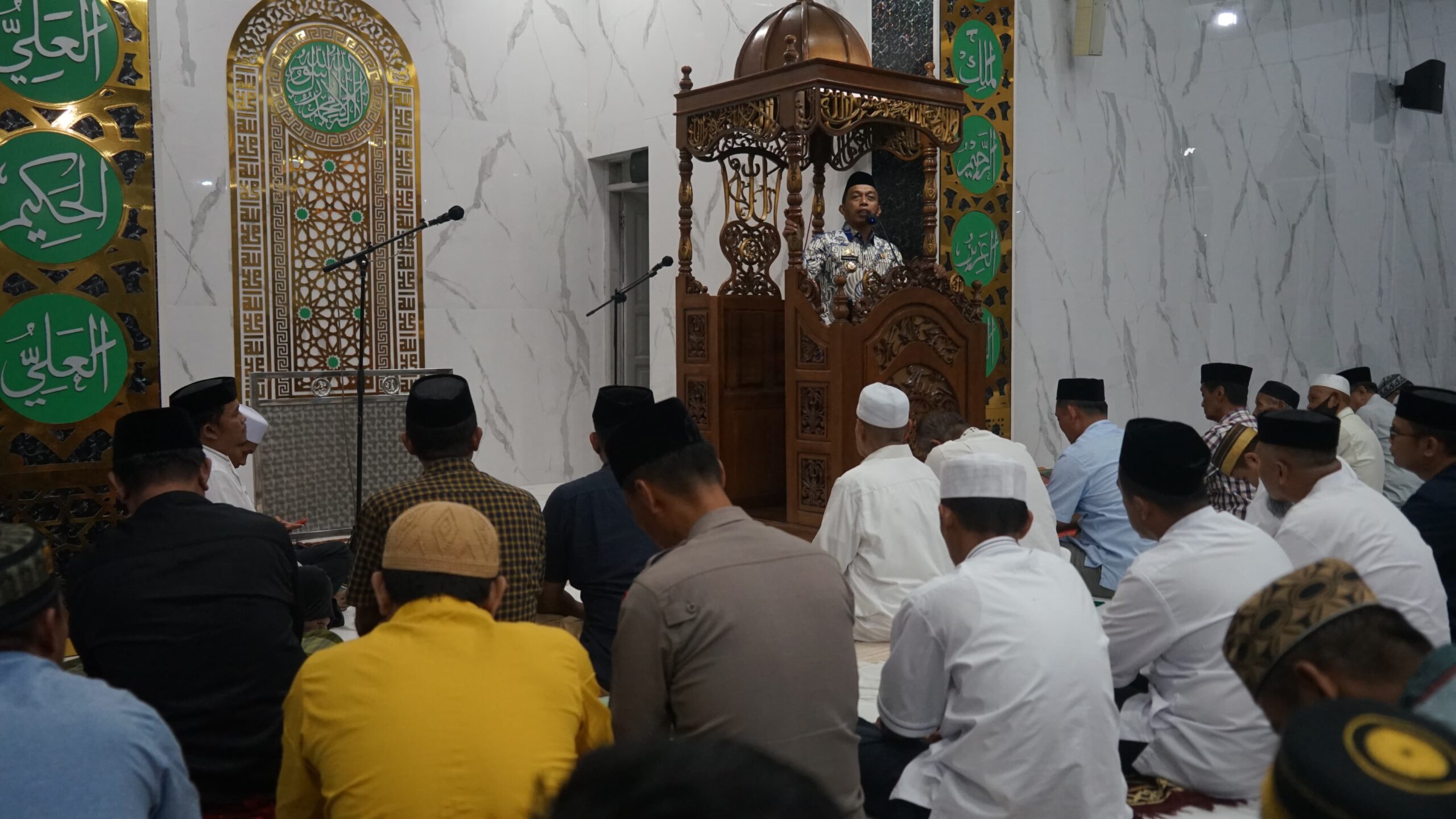 Sidrap — Bupati Sidrap H. Syaharuddin Alrif menyampaikan ceramah tarawih di Masjid Husnul Iman, BTN Wassabe, Kecamatan Watang Pulu, pada malam ke-15 Ramadan, Jumat (14/3/2025).