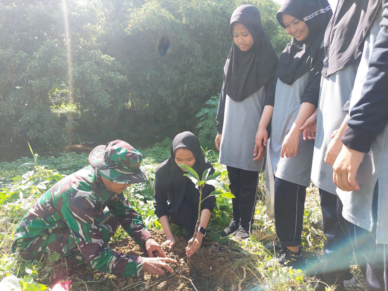 SIDRAP-Upaya untuk mengurangi dampak pemanasan global, sekaligus menjaga dan melestarikan lingkungan hidup, Koramil 03/Maritengnae melakukan penanaman pohon penghijauan di Lahan kosong diarea Pesantren As-Salma  Desa Allakuang Kec. Maritengngae Kab. Sidrap pada hari Sabtu (12 April 2025).