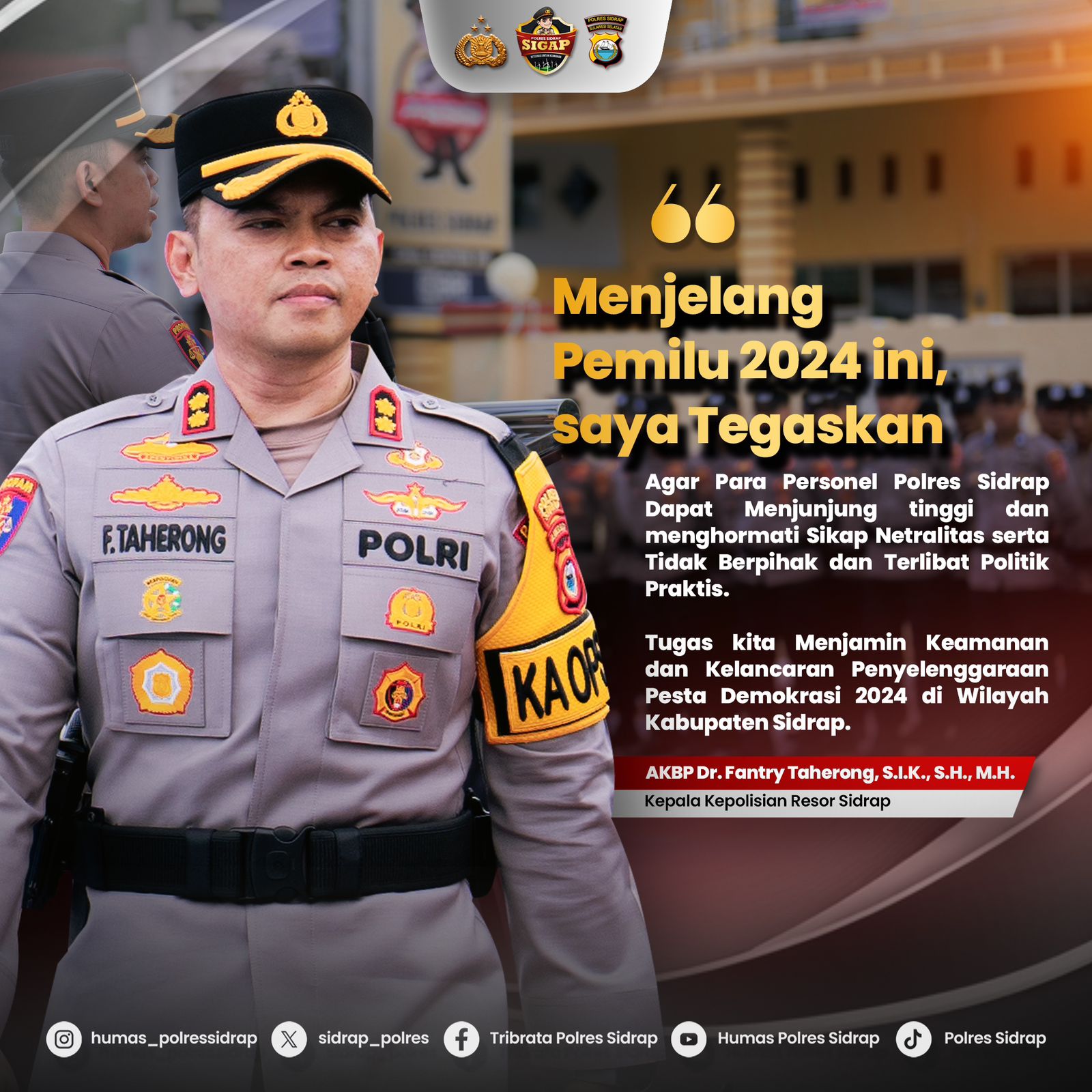 Sidrap – Menjelang pelaksanaan Pemilihan Kepala Daerah (Pilkada) yang akan digelar pada tahun 2024, Kapolres Sidrap AKBP Dr. Fantry Taherong, SH., S.I.K., M.H. mengeluarkan imbauan penting kepada seluruh anggotanya.