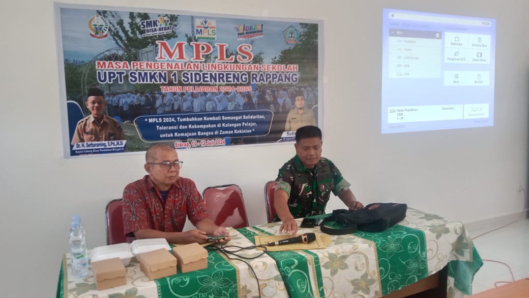 Sidrap – Bertempat di SMKN 1 Kab Sidrap siswa Baru SMKN 1 Sidrap mendapatkan pembekalan pemahaman wawasan kebangsaan dan bela negara yang dibawakan oleh Kasdim 1420/Sidrap Mayor Arm Arie Widarto. Jum’at (12/07/24)