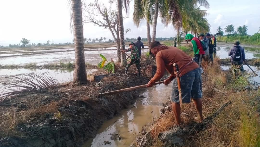 Sidrap-sebagai upaya memaksimalkan fungsi dari irigasi sawah Pelda Abd.Halim (Plt.Danramil 1420-02/Tellu Limpoe) bersama jajaran Babinsa Ramil 02/Tellu Limpoe mengajak para Gapoktan untuk melaksanakan karya bakti saluran irigasi di Kelurahan Arateng Kec Tellu Limpoe Kabupaten Sidrap. Minggu (27/04/2025).
