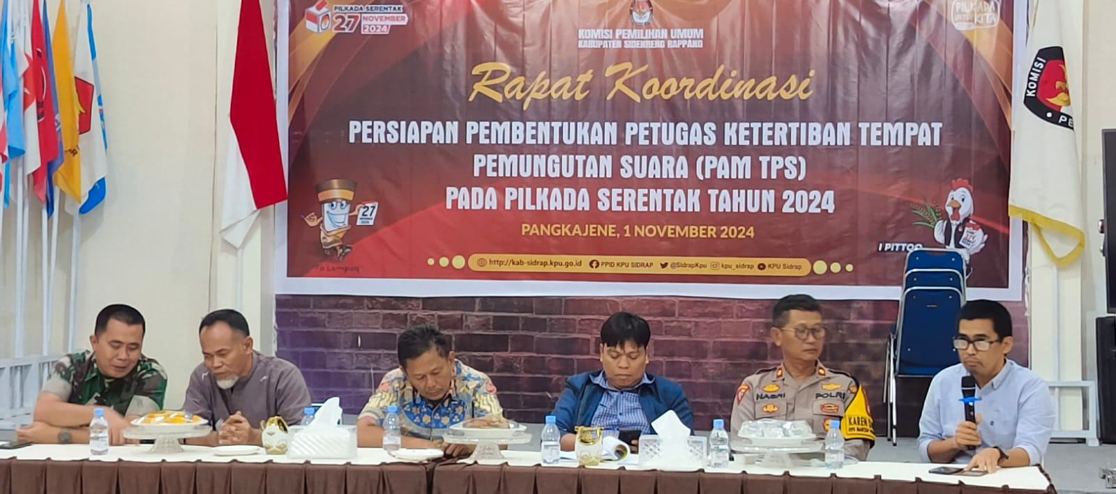 SIDRAP, 1 November 2024 – Kabag Ops Polres Sidrap menghadiri rapat koordinasi (rakor) persiapan pembentukan Petugas Ketertiban Tempat Pemungutan Suara (TPS) untuk Pemilihan Kepala Daerah (Pilkada) yang digelar di Kantor KPU Sidrap.