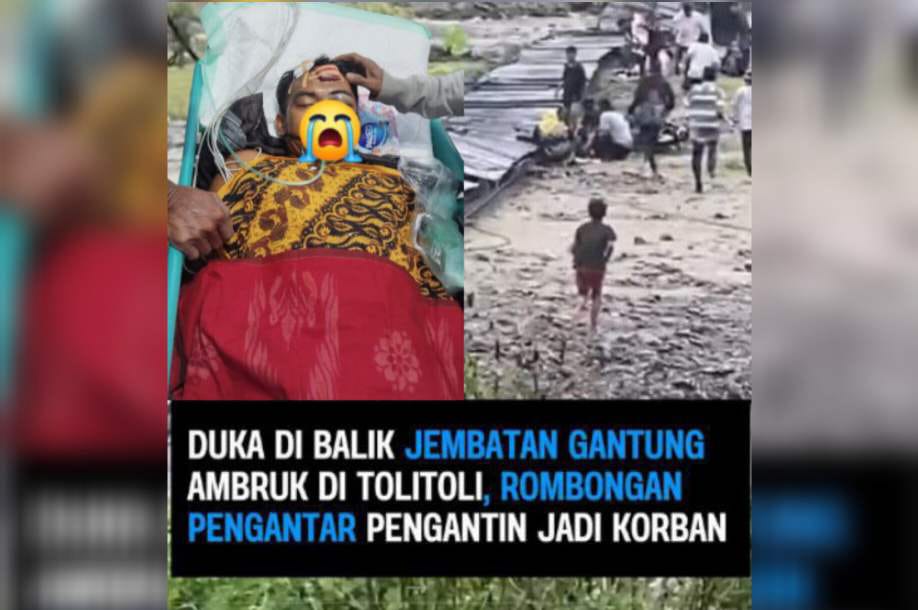 Tolitoli, Sulawesi Tengah – Suasana pesta pernikahan di Desa Galumpang menuju Dusun Panyapu, Kecamatan Dakopamean, Kabupaten Tolitoli, berubah menjadi duka mendalam. Jembatan gantung yang menurut warga belum lama dibangun pascatragedi banjir yang pernah melanda wilayah tersebut itu ambruk pada Minggu sore (07/09/2025).