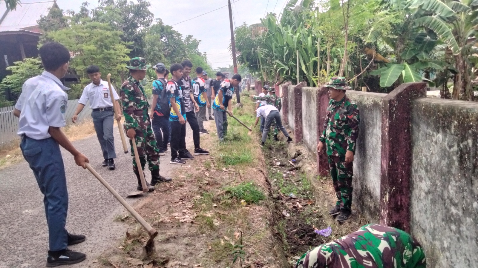 Kegiatan ini merupakan bentuk nyata kemanunggalan TNI dengan rakyat, di mana para Babinsa bahu-membahu bersama para guru dan puluhan siswa SMK Negeri 3 Sidrap. Sasaran utama aksi ini adalah pengangkatan sampah, pembersihan rumput liar, serta pengerukan sedimen tanah yang menyumbat drainase di sepanjang area sekolah.