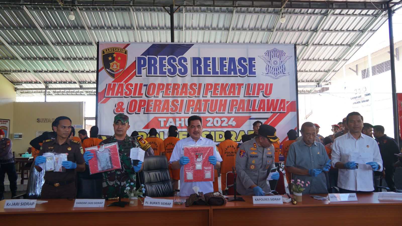 Kegiatan dipimpin Kapolres Sidrap, AKBP Dr. Fantry Taherong, disaksikan Penjabat Bupati Sidrap, H. Basra, Ketua DPRD Sidrap, H. Ruslan, Dandim 1420/Sidrap, Letkol Inf Awaloeddin, serta perwakilan Kajari Sidrap dan Ketua PN Sidrap.