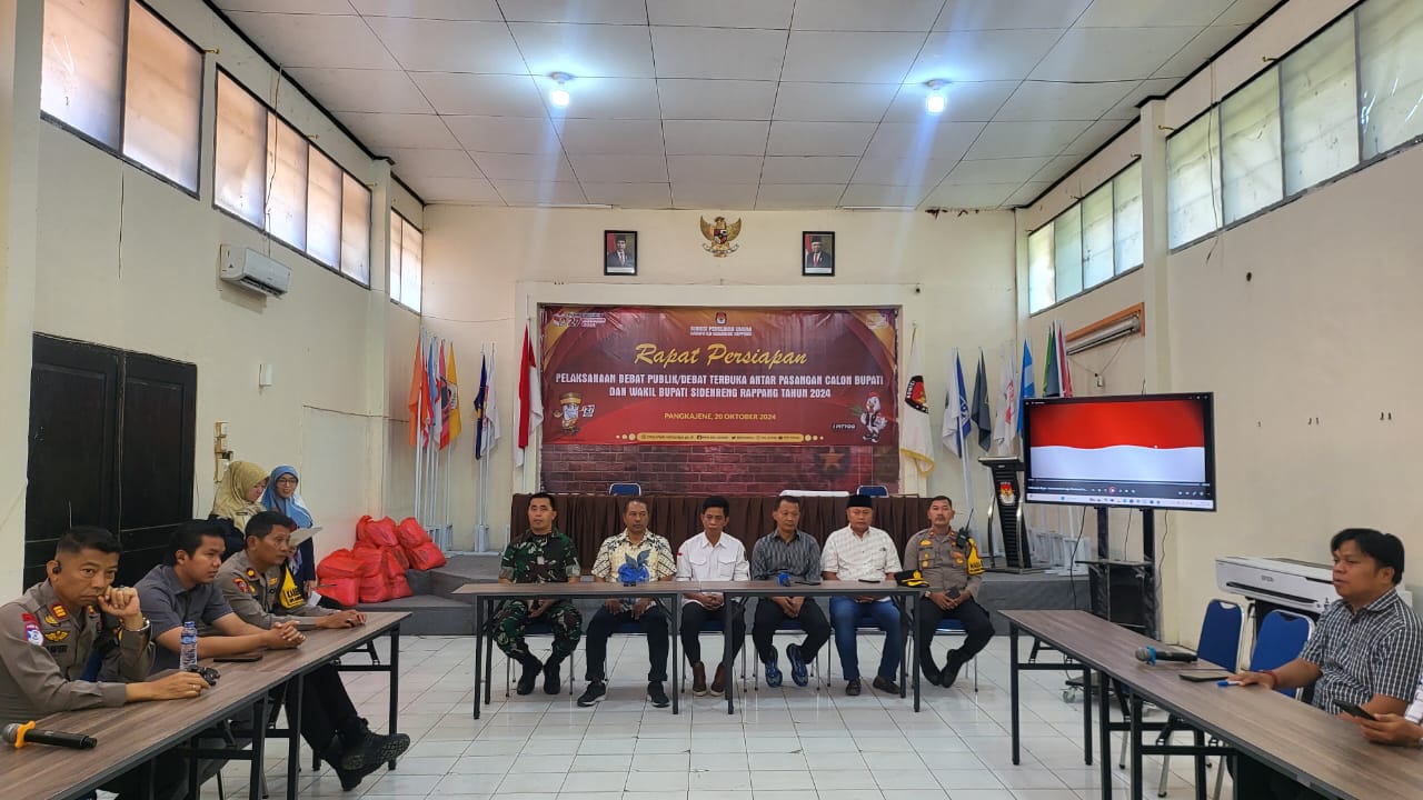 Rapat ini bertujuan untuk membahas kesiapan pelaksanaan debat publik atau debat terbuka bagi pasangan calon (Paslon) Bupati dan Wakil Bupati dalam konteks Pemilihan Kepala Daerah (Pilkada) Sidrap tahun 2024.