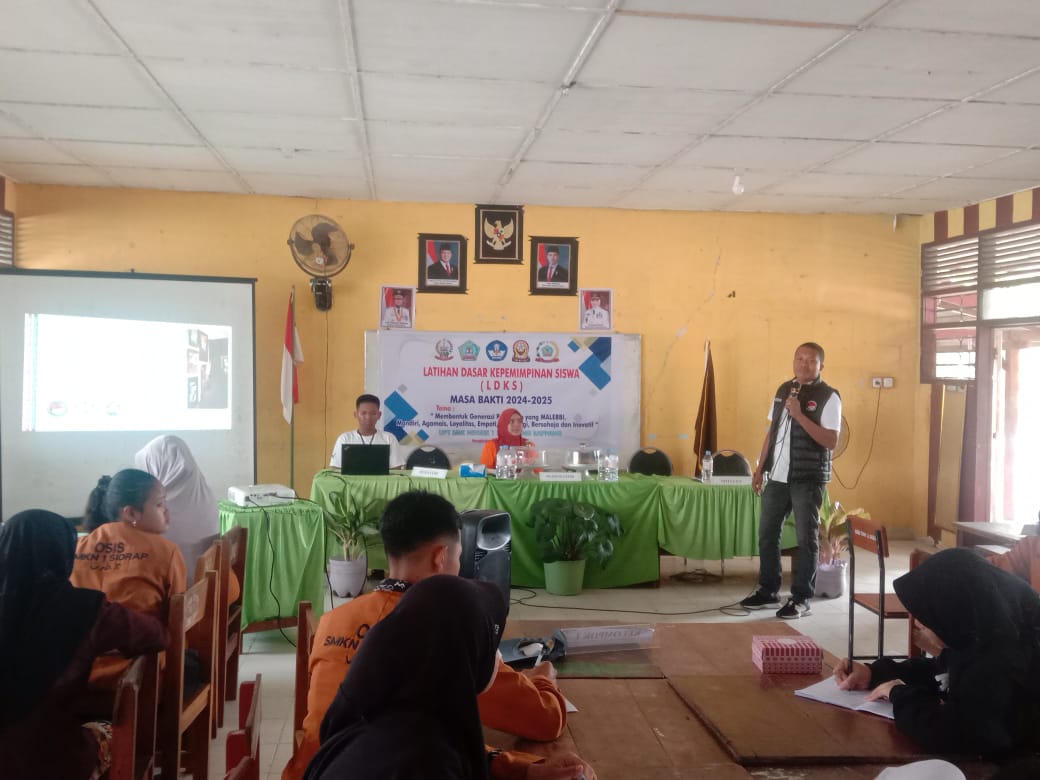 SIDRAP – Mewakili Kasat Resnarkoba IPTU Didi Sutikno, Kaurmintu Sat Resnarkoba Polres Sidrap, AIPTU Hendra, hadir sebagai pemateri dalam kegiatan Latihan Dasar Kepemimpinan Siswa (LDKS) di SMKN 1 Sidrap, Minggu (27/04/2025).